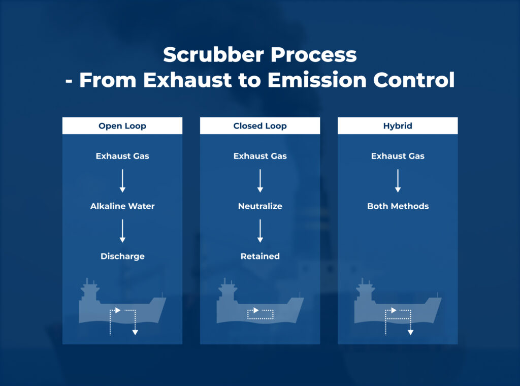 - 闭环系统: 使用添加碱性添加剂的循环淡水,并将残留物保留至港口进行处理。适用于敏感或受监管水域的运行,或适用于具有不同合规性要求的船舶所有者。